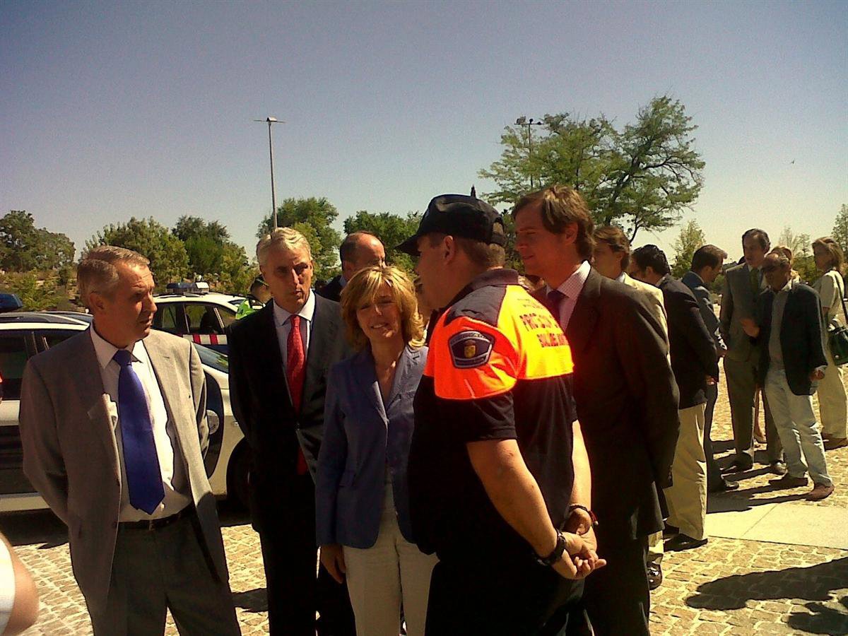 Tras asistir a una demostración cómo funciona el programa con un vecino entregando las llaves, la consejera ha comprobado el funcionamiento de las cámaras de videovigilancia en la localidad. En el acto ha estado acompañada además por el director general de Seguridad e Interior de la Comunidad, Enrique Barón; el director de Protección Ciudadana, Eduardo San Román, y por el comandante de la Guardia Civil, Juan Manuel Salgado, entre otros.