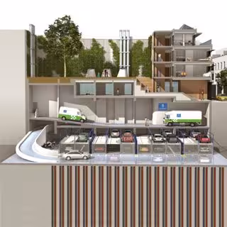 Por otro lado, cuenta con un aparcamiento semirrobotizado de 46 plazas y, en tercer lugar, el nuevo cantón de limpieza, que se sitúa bajo rasante.
