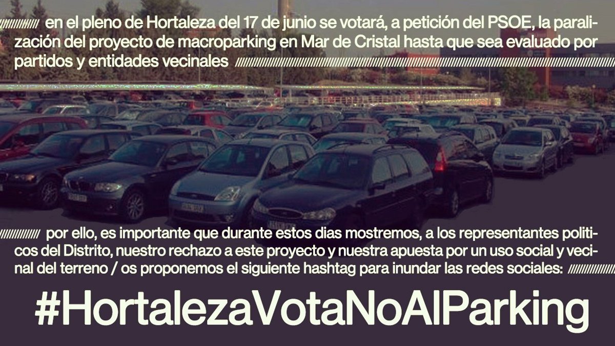 El proyecto de parking disuasorio en Mar de Cristal se paraliza hasta ser evaluado por partidos políticos y entidades vecinales, como se ha decidido esta tarde en el Pleno de Hortaleza con los votos favorables de PSOE y Más Madrid y la abstención de PP, Cs y Vox, han informado fuentes presenciales a Europa Press.