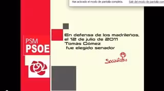 Precisamente, tras estas palabras se ven imágenes de cómo Tomás Gómez ha participado en el movimiento de la 'marea blanca' contra la externalización de la gestión de hospitales públicos y de las noticias que meses después recogieron la decisión del Tribunal Superior de Justicia de Madrid de paralizar el proceso y la del Gobierno madrileño de no continuar con el mismo.