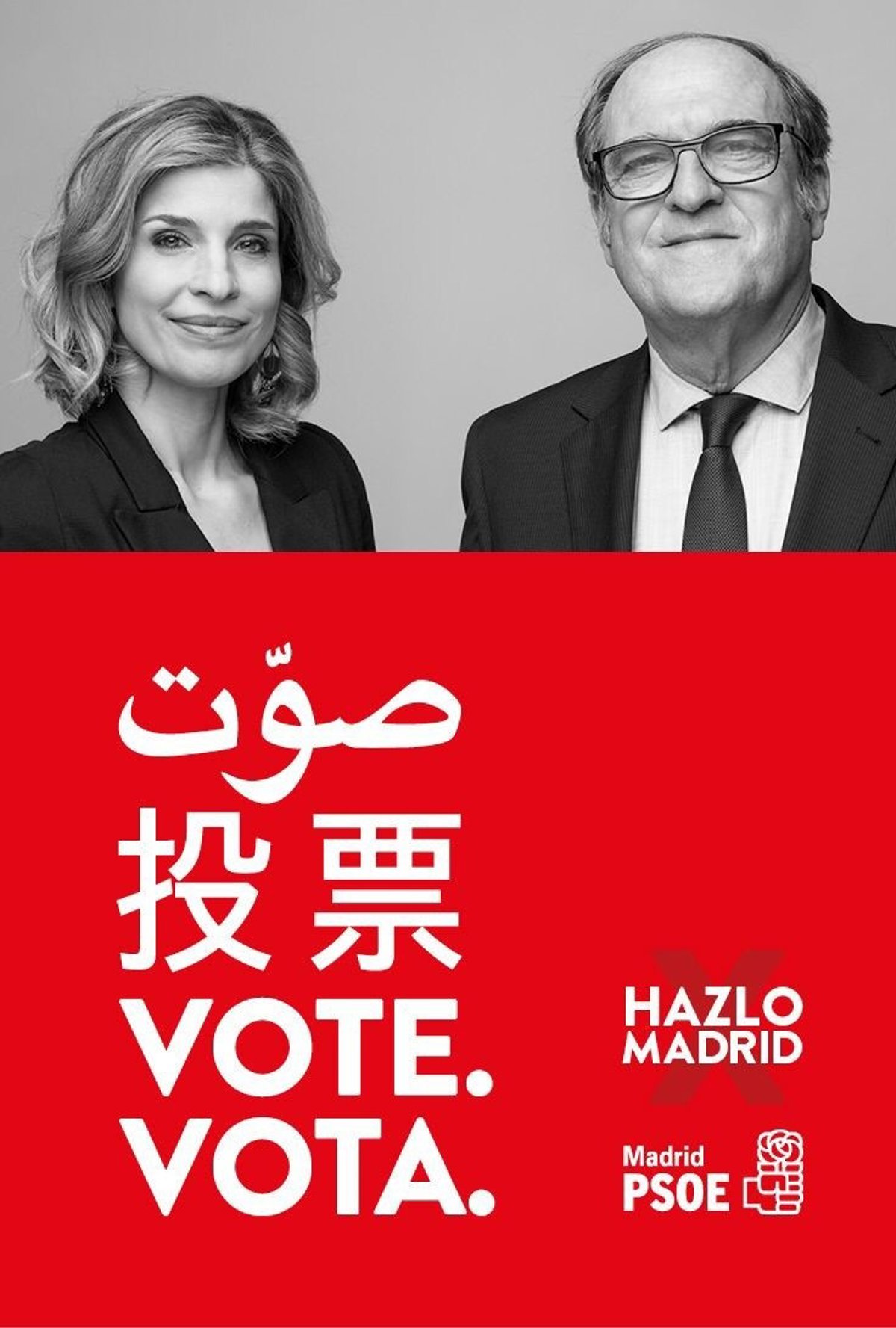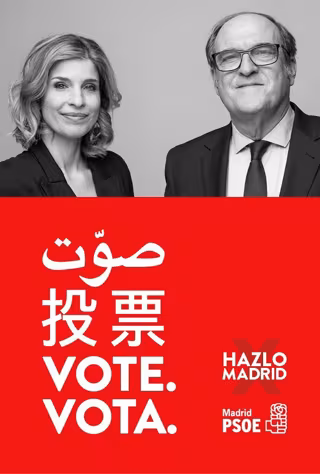 En el cartel electoral aparecen el propio Gabilondo y la número dos de la lista, Hana Jalloul, donde animan a votar a toda la población que vive en Madrid, también a la extranjera. "Este mupi representa que en nuestro partido luchamos por invertir en políticas inclusivas", ha lanzado Jalloul en la estación de Sol en declaraciones a los periodistas.