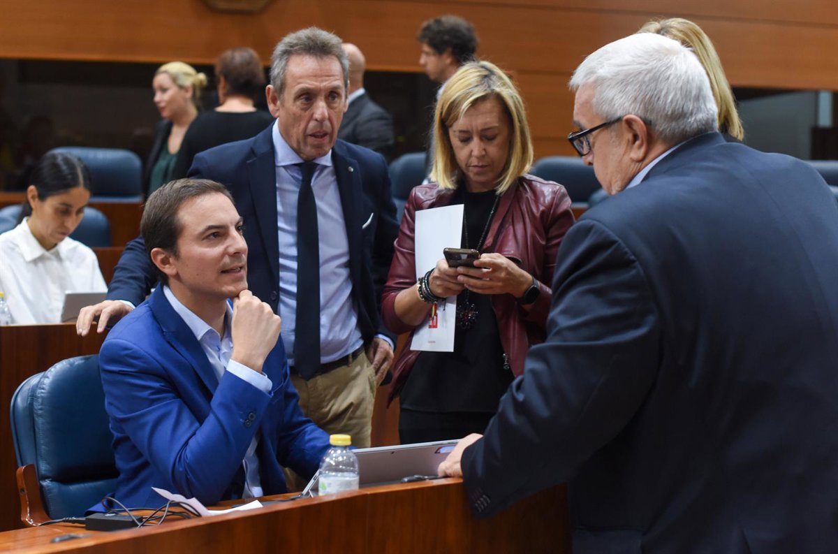 El secretario general del PSOE madrileño, Juan Lobato (1i), y el diputado de su grupo, Fernando Fernández Lara (2i), en una sesión plenaria en la Asamblea de Madrid, a 20 de octubre de 2022, en Madrid (España). - Gustavo Valiente - Europa Press