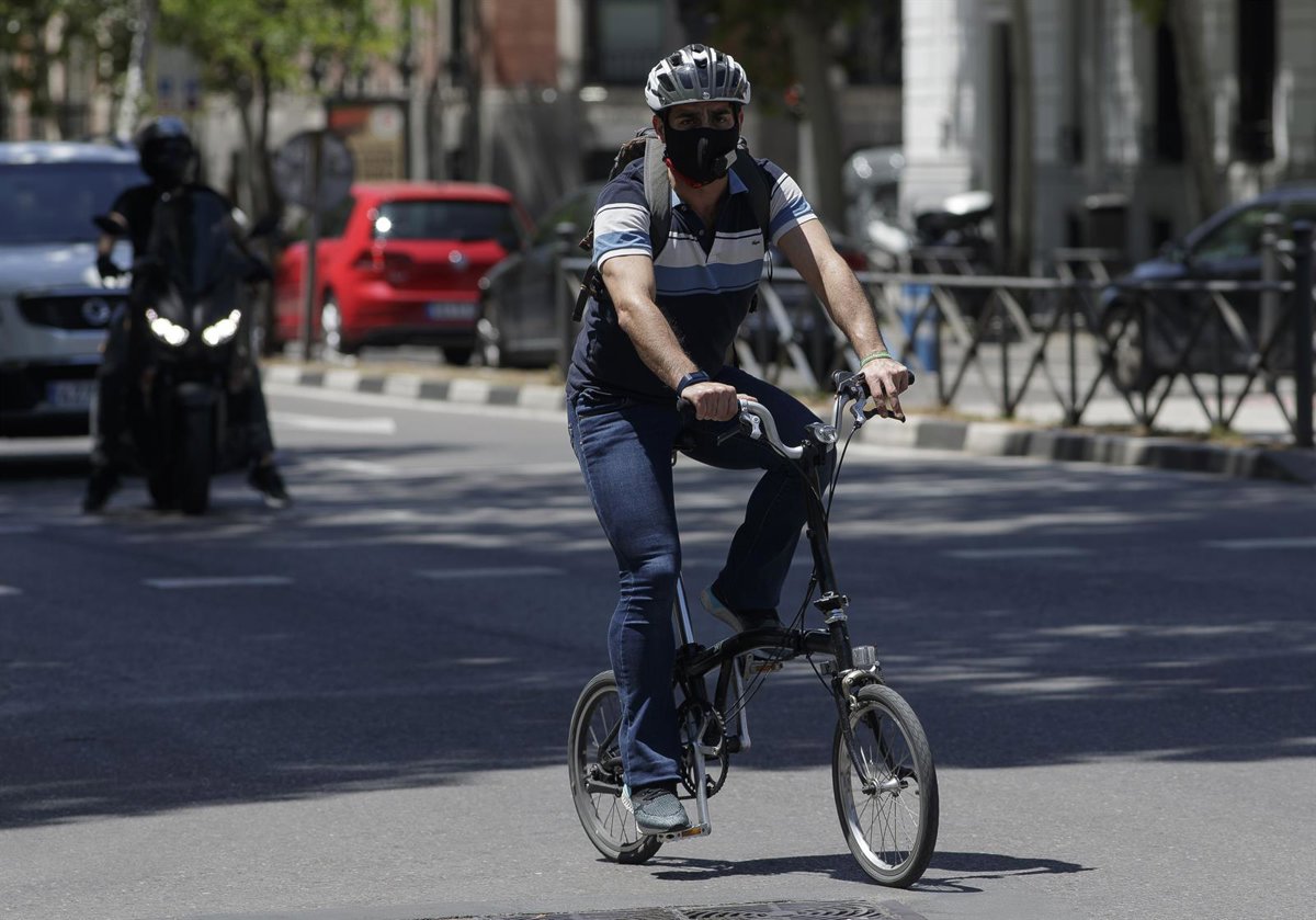 Un hombre protegido con mascarilla monta en una bicicleta - Eduardo Parra - Europa Press