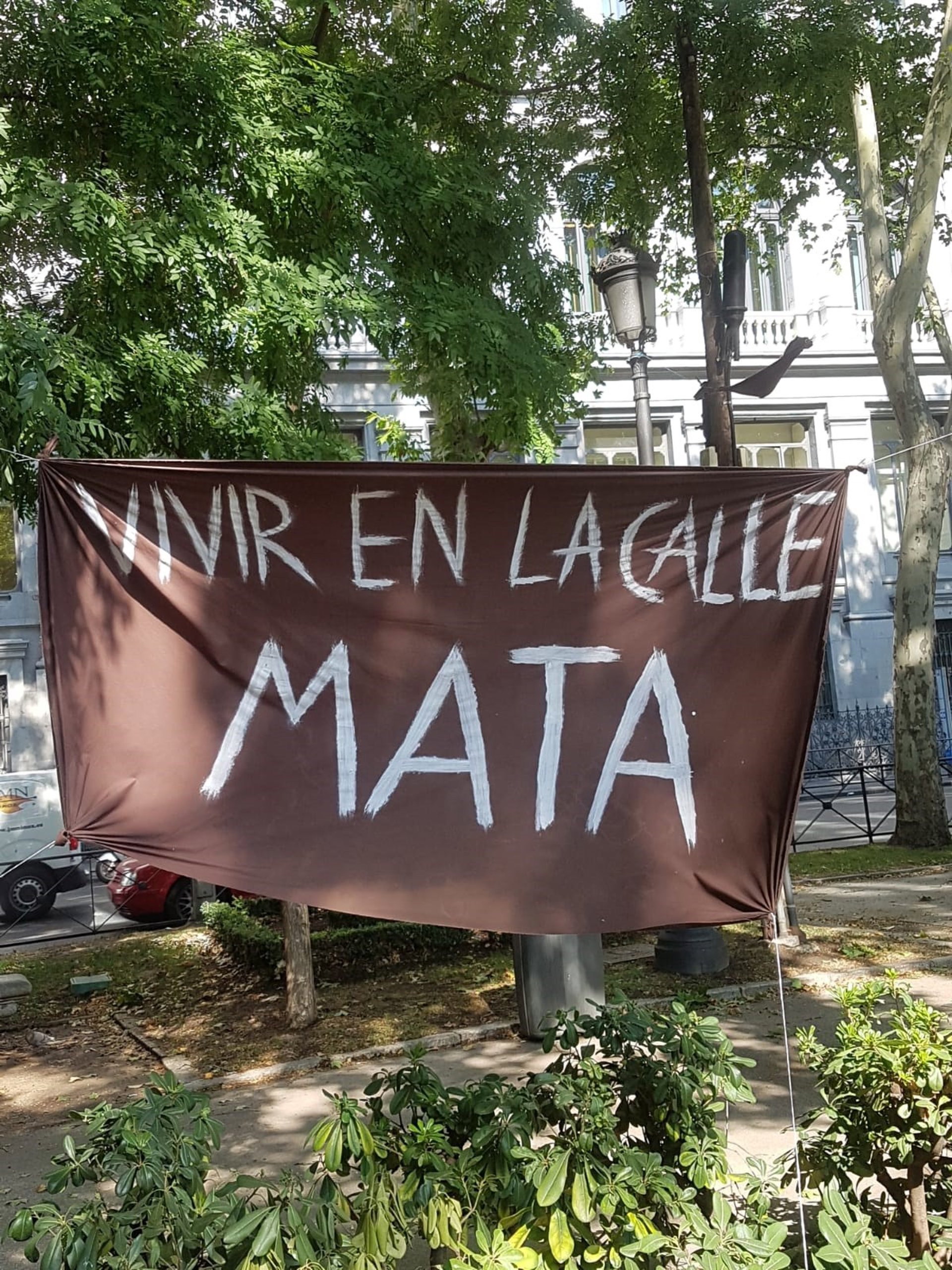 Acampada de personas sin hogar en el Paseo del Prado. - EUROPA PRESS - Archivo
