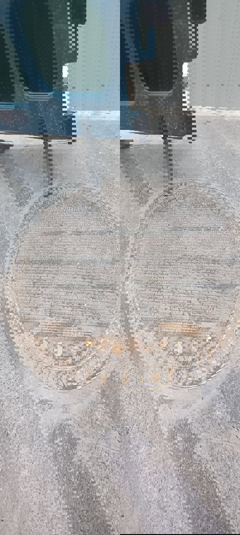 Es la 'Umbraesfera', una placa colocada en 2011 por Eames Demetrios, autodenominado 'geógrafo interdimensional', con las distintas fases lunares circundándola. Su impulsor explica en su blog, https://kcymaerxthaere.com/, que la puerta es la entrada a Kcymaerxthaere, el nombre del universo alternativo al que se adentra Demetrios, "coherente" con el mundo físico del planeta Tierra pero "con diferentes historias, criaturas, reglas e incluso leyes de la física".