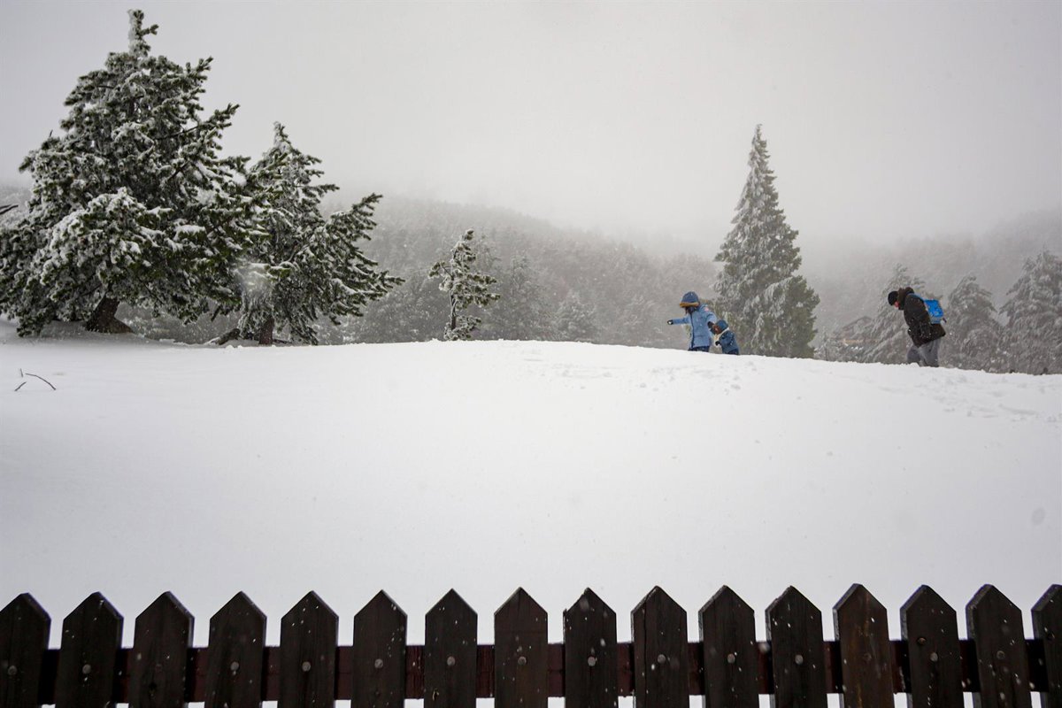 Varias personas caminan por la montaña durante el temporal de nieve en la Sierra de Madrid, en el Puerto de Navacerrada (Madrid) a 16 de noviembre de 2019. - Ricardo Rubio - Europa Press - Archivo