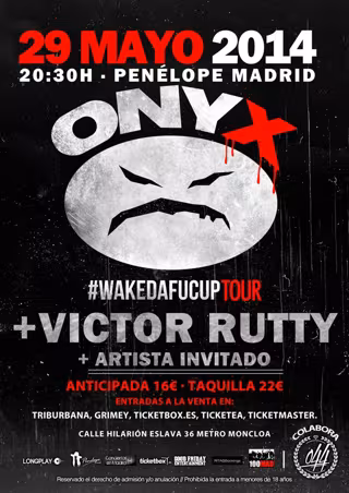 La banda estadounidense de hip hop 'Onyx' actuará el próximo 29 de mayo en la madrileña sala Penélope en gira su #Wakedafucup Tour 2014, ha informador el organizador.