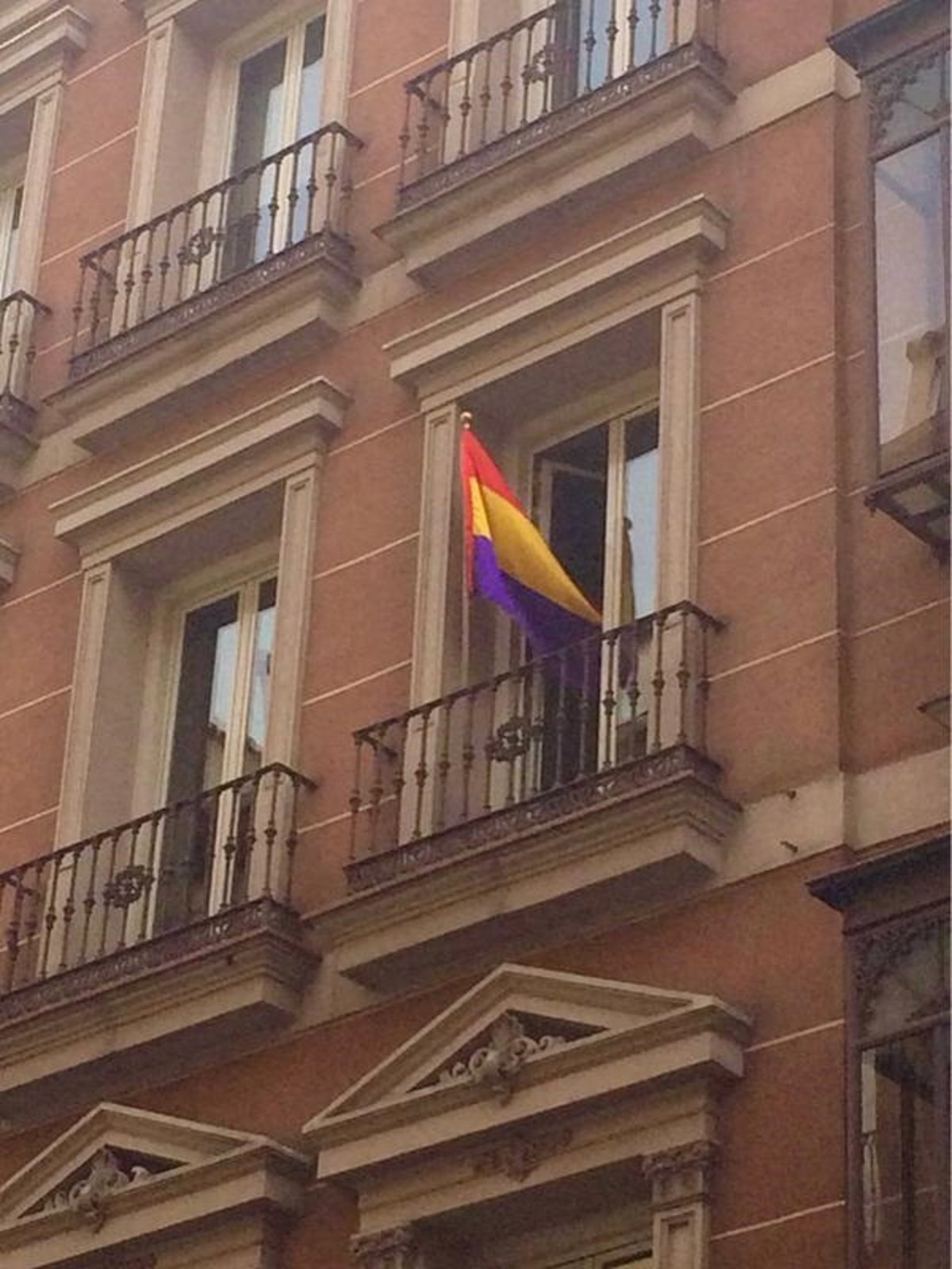 La candidata de IU al Ayuntamiento de Madrid, Raquel López, ha colgado este martes una bandera republicana en el balcón de su despacho en el edificio municipal donde se ubican los grupos municipales en el Consistorio (calle Mayor, 71) para conmemorar la II República y reclamar el derecho a "decidir y elegir" el sistema político del país.