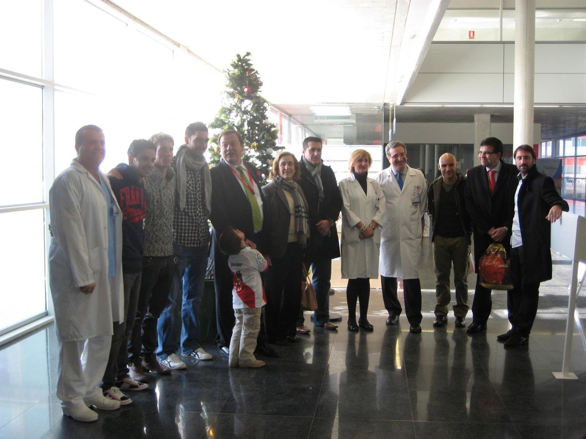 Éste es el tercer año consecutivo que una delegación del club madrileño, tercer clasificado de la Liga Adelante, acude al centro sanitario para saludar a los pacientes menores y poner una nota de alegría en su estancia hospitalaria durante el periodo navideño.