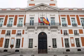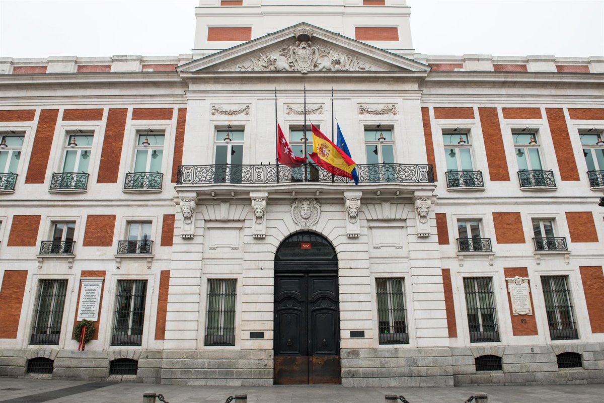 Archivo - Fachada de la Real Casa de Correos, sede de la Comunidad de Madrid, con las banderas a media asta - Joaquin Corchero - Europa Press - Archivo