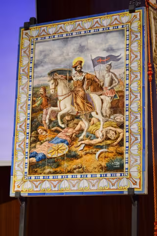 El alcalde de Alcalá de Henares, Javier Bello, ha presentado este martes la restauración de un retablo cerámico recuperado del antiguo depósito de Sementales y que representa a Santiago Apóstol, ha informado el Consistorio en un comunicado.