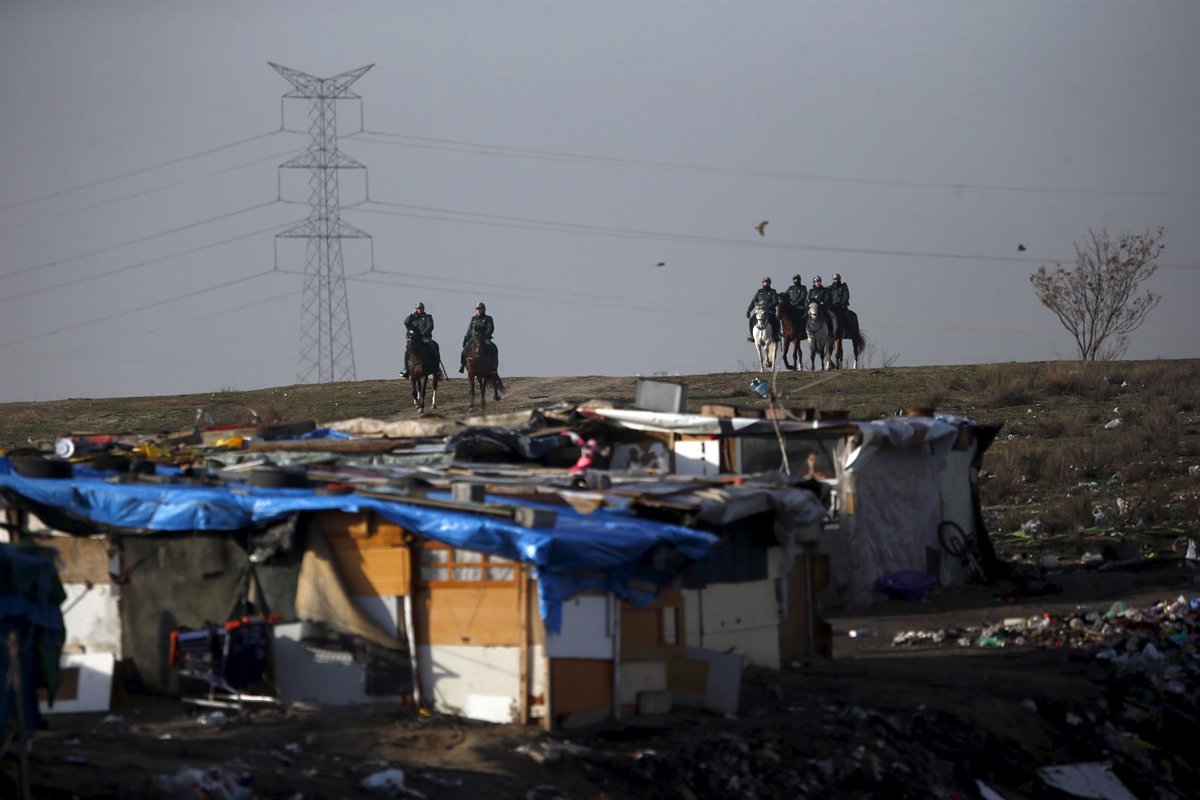 El poblado chabolista fue cercado por los Cuerpos y Fuerzas de Seguridad del Estado. Así, en la zona llegaron a concentrarse hasta 150 efectivos de distintas unidades de la Guardia Civil y Policía Municipal de Madrid, que apoyó la operación.