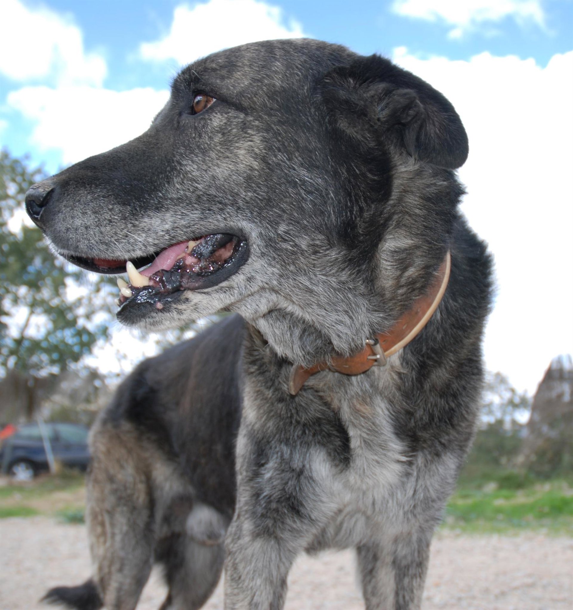 El perro es un mastín macho de color gris de aproximadamente siete años de edad. Este tipo de perros son utilizados normalmente para la guarda de fincas y cuando enferman o envejecen son abandonados.