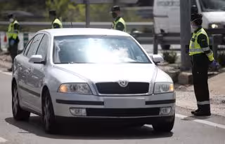 Un guardia civil da el alto a un vehículo en el punto kilométrico 19 de la A6 a su paso por la capital para regular el flujo del tráfico y si todos aquellos desplazamientos están justificados, porque de no ser así, cualquiera puede enfrentarse a multas - Eduardo Parra - Europa Press