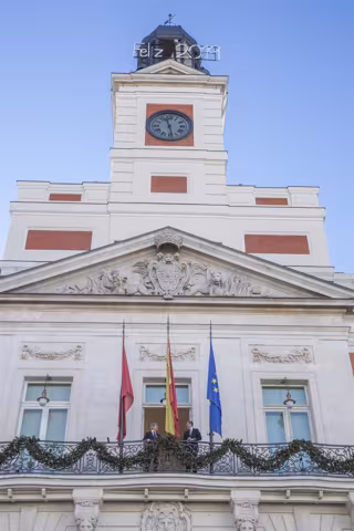 Una vez 2019 haya llegado a la Península, a partir de las 00.04 horas se proyectará un vídeo en la fachada de la Real Casa de Correos donde se va a promocionar la Comunidad de Madrid y Canarias.