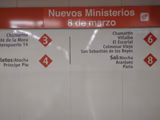 Todas las señalizaciones de la estación de Cercanías de Nuevos Ministerios, en andenes, pasillos y accesos, lucen el nuevo letrero que añade '8 de marzo' al nombre oficial de la parada.