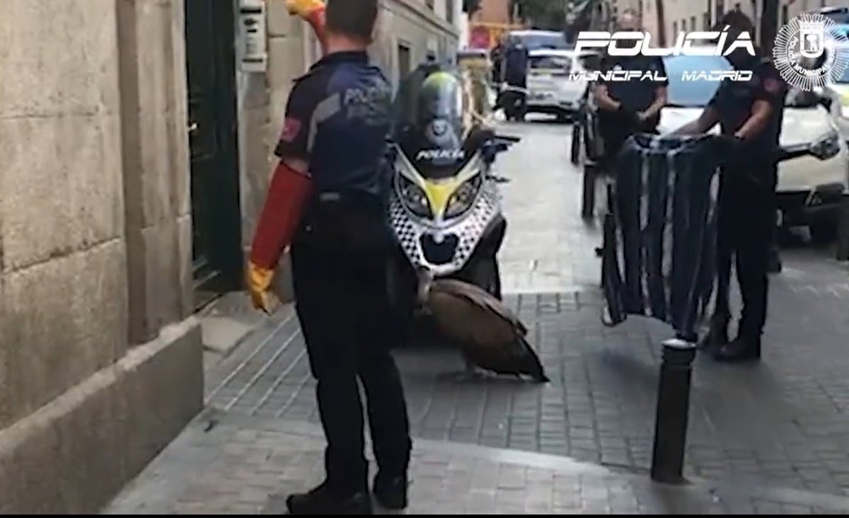 Agentes de la Policía Municipal rescatan un buitre en Malasaña - POLICÍA MUNICIPAL