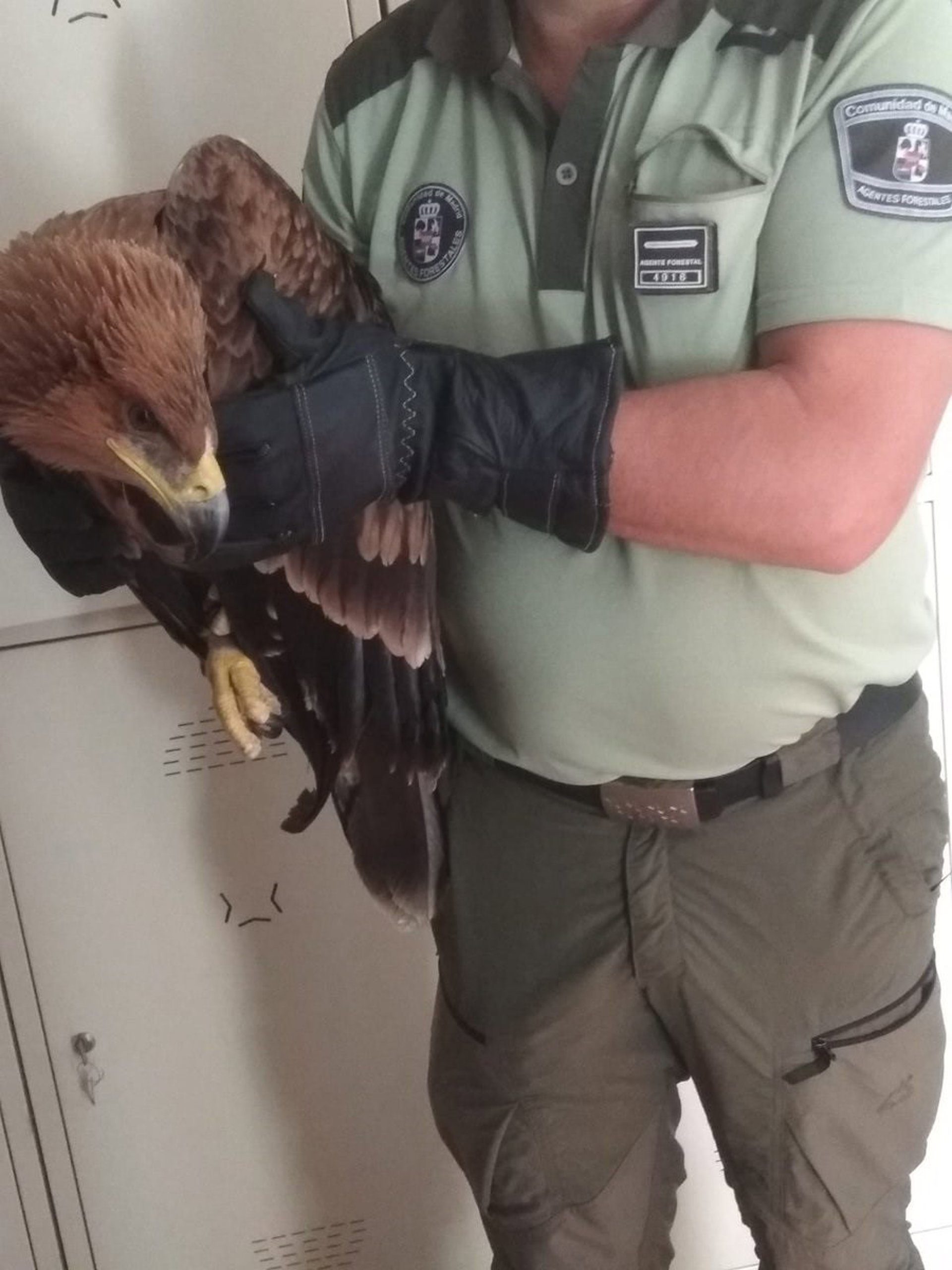 Agentes forestales de la Comunidad de Madrid han rescatado a un ejemplar de águila imperial joven, especie en peligro de extinción, que se encontraba con síntomas de agotamiento y deshidratación en la zona de Pelayos de la Presa, ha informado a Europa Press un portavoz de Emergencias 112 Comunidad de Madrid.