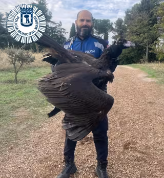 Rescatan un buitre negro perdido en el club de golf de Puerta de Hierro de Madrid - POLICÍA MUNICIPAL DE MADRID