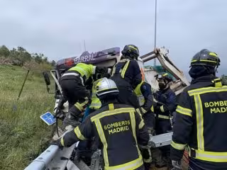 Bomberos del Ayuntamiento de Madrid han rescatado este mediodía al conductor de un camión volquete de escombros, de 22 años, que se ha salido de la M-40 y ha quedado atrapado en el vehículo, ha informado a Europa Press una portavoz de Emergencias Madrid.