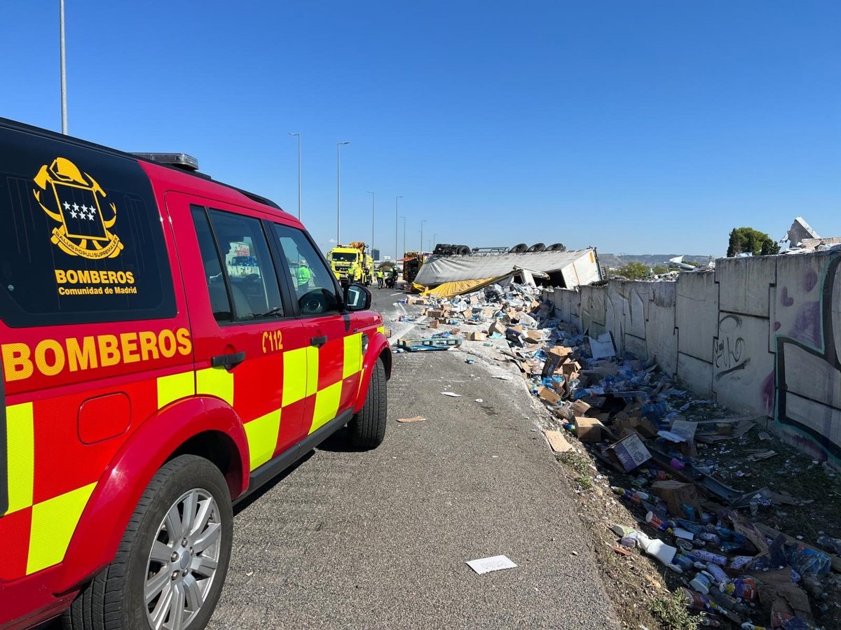 Bomberos de la Comunidad de Madrid han rescatado un hombre de 47 años, el conductor de un camión que ha volcado este mediodía en una vía de acceso a la A-2, en el municipio de Alcalá de Henares, ha informado a Europa Press un portavoz de Emergencias 112.