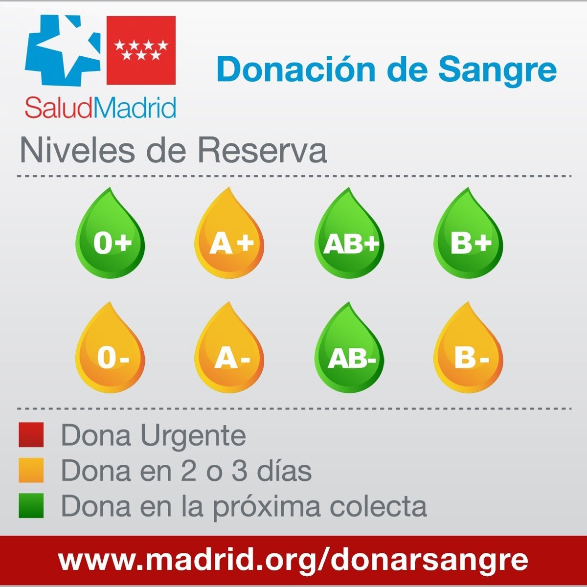 Las reservas de sangre en la Comunidad de Madrid han mejorado aunque se requieren donaciones en los próximos días para los grupos A+, A-, 0- y B-, según ha indicado el Centro de Transfusión de Sangre.