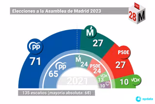 El PP ha logrado la mayoría absoluta con 71 diputados, mientras que PSOE y Más Madrid empatan a 27 escaños en una Cámara de Vallecas en la que desaparece Podemos, según los datos provisionales facilitados por la Comunidad de Madrid.