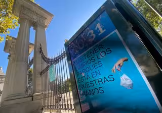 Una de las 22 pantallas instaladas por el Ayuntamiento de la capital en los accesos al Parque del Buen Retiro. - Eduardo Parra - Europa Press