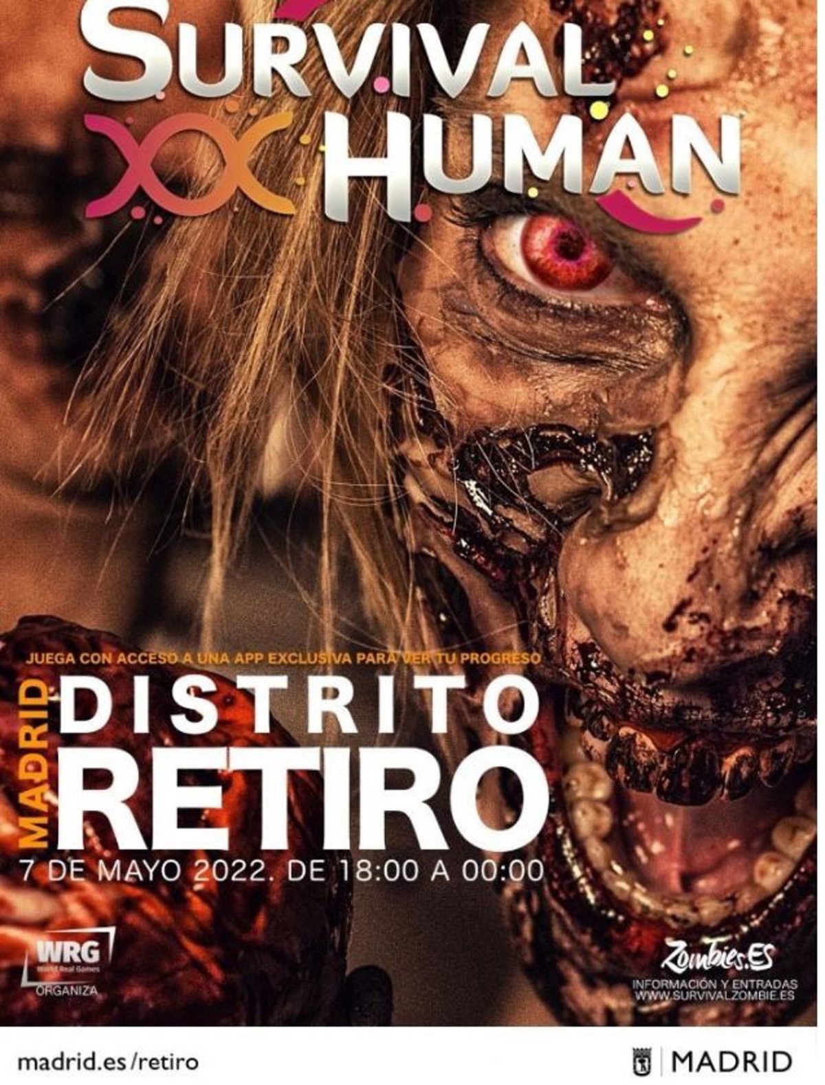 La Junta Municipal Retiro en colaboración con World Real Games ha organizado para el 7 de mayo un evento de scape room urbano llamado 'Survival Human Zombie', que contará con una serie de enigmas que tendrán que resolver los participantes para sobrevivir a la caza de los actores que darán vida a los "no-muertos" y desvelar la historia de esta edición.