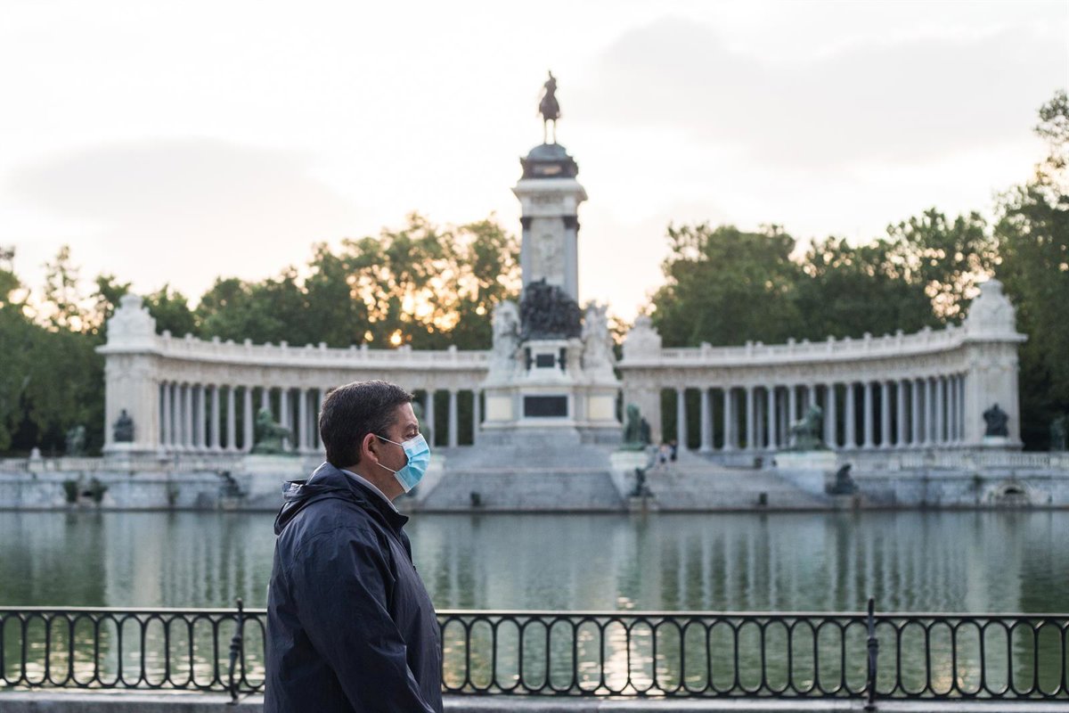 Archivo - Un hombre con mascarilla camina junto al Estanque por la calle Nicaragua en el Parque del Retiro de Madrid - Joaquin Corchero - Europa Press - Archivo