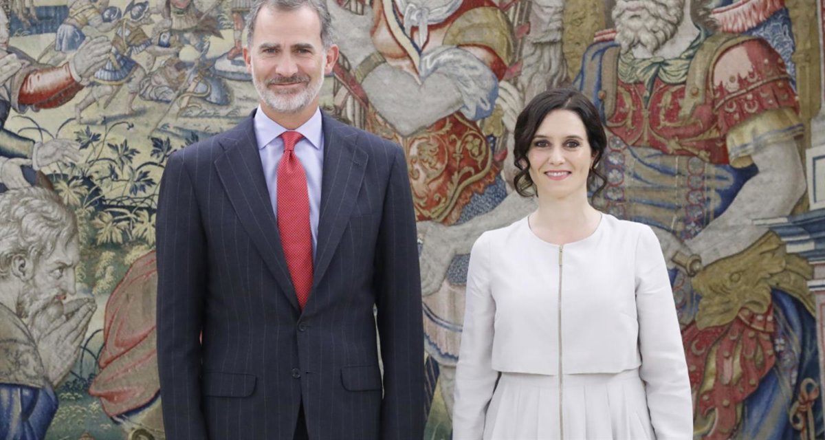 El encuentro del monarca con Ayuso, que tomó posesión como presidenta el pasado día 19 tras las elecciones del 4 de mayo, tendrá lugar a partir de las 17 horas, según informaron fuentes del Gobierno regional.