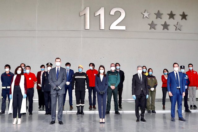Durante el recorrido en su visita que estuvieron acompañados por la presidenta de la Comunidad de Madrid, Isabel Díaz-Ayuso, y el ministro del Interior, Fernando Grande Marlaska, y presidieron la reunión diaria que celebra el operativo del 112 en la Comunidad de Madrid.