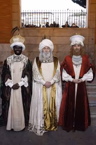 En este ocasión, el 'look' de Gaspar, Melchor y Baltasar ha recuperado su indumentaria tradicional, luciendo túnicas blancas con adornos y una capa de terciopelo sin ornamentación. El pasado año, su atuendo causó la polémica, dado que sus túnicas iban adornadas con estampados de animales y flores. Entonces, Baltasar lució un turbante con plumas de faisán y rastas.