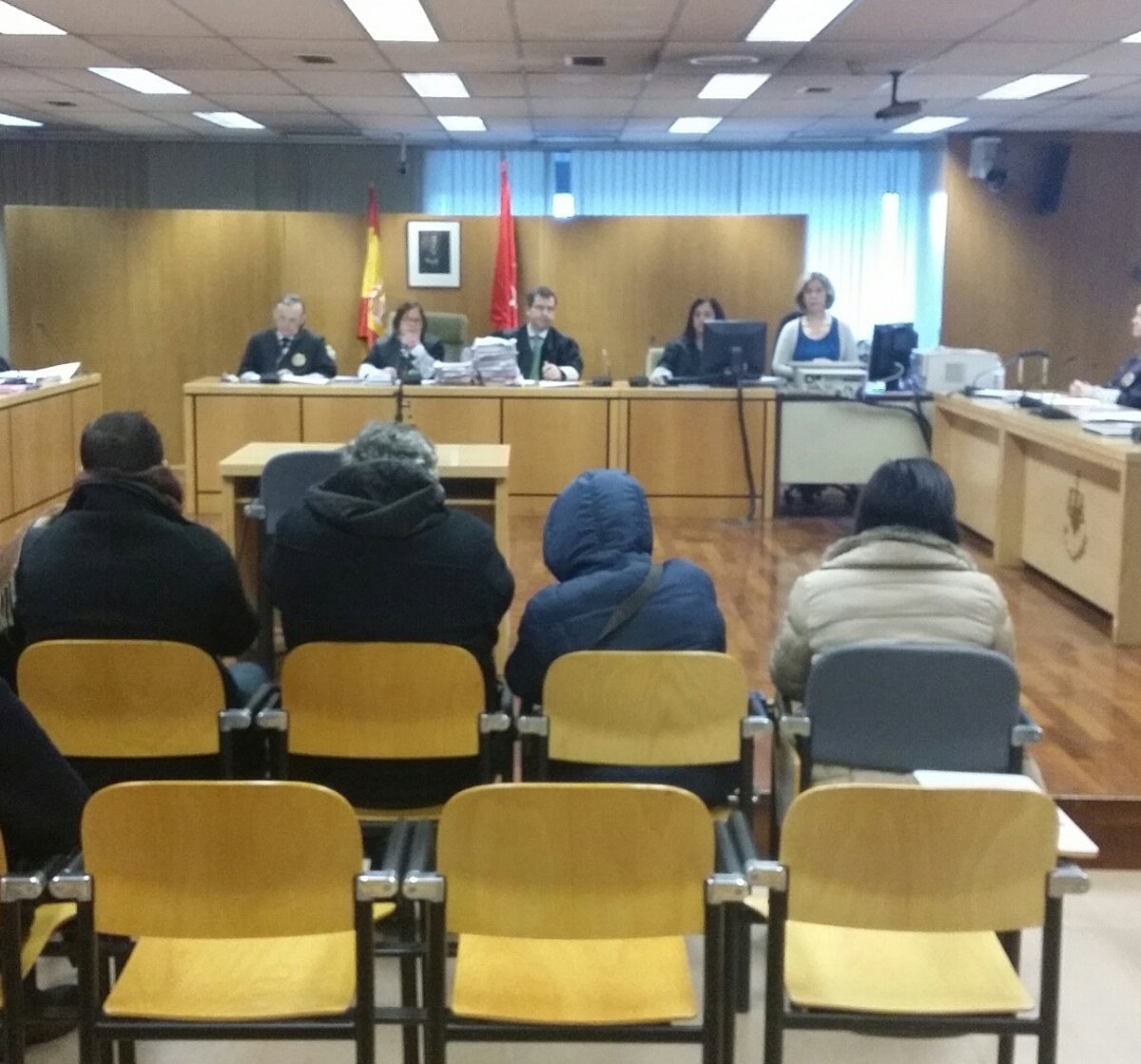 Uno de los atracos se cometió a las 7.55 horas del 10 de mayo de 2013 en el número 74 de la calle Alcalá. Los procesados irrumpieron en una sucursal bancaria con los rostros cubiertos por bragas y pasamontañas.