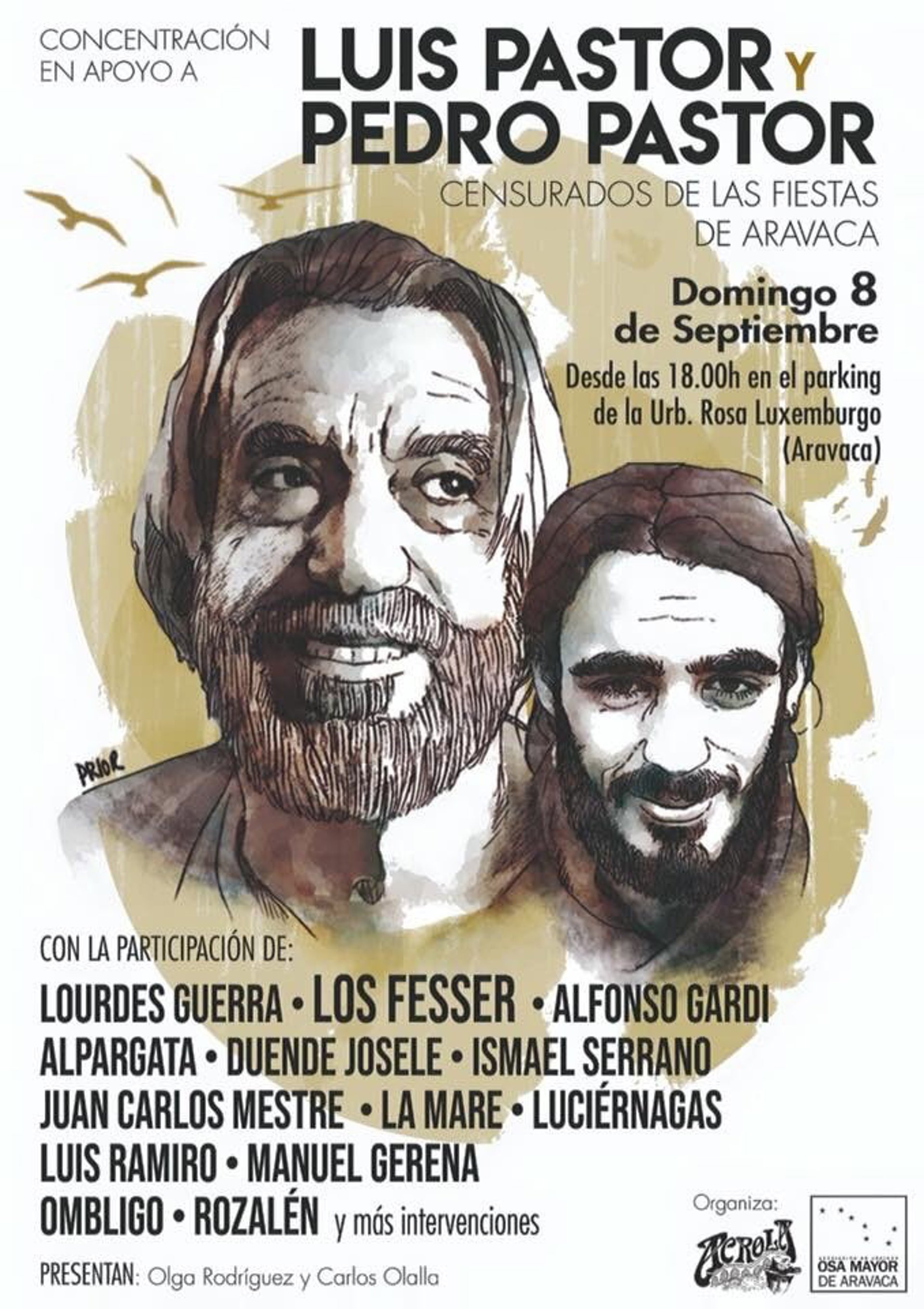 La asociación vecinal Osa Mayor de Aravaca y la asociación cultural deportiva Rosa Luxemburgo de Aravaca convocaron una concentración el 8 de septiembre en apoyo a Luis y Pedro Pastor ante el "desprecio" de la Junta del Distrito de Moncloa-Aravaca tras anular su concierto en las fiestas del barrio.