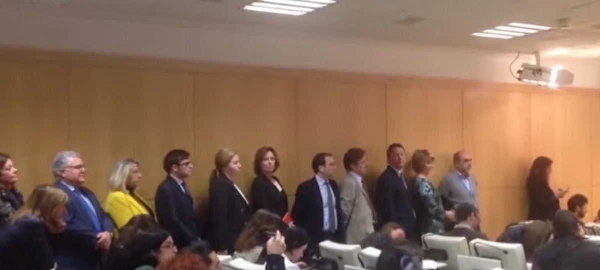 El grupo municipal del PP, con Aguirre a la cabeza, abandona el pleno e irrumpe en la sala de prensa como protesta