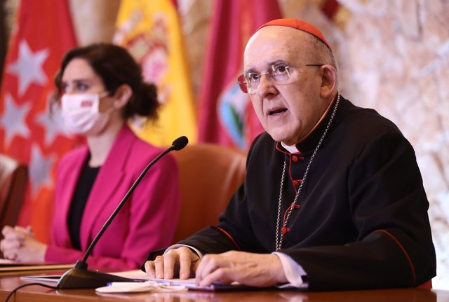 La presidenta de la Comunidad, Isabel Díaz Ayuso, participa, junto al alcalde de la capital, José Luis Martínez-Almeida, la delegada del Gobierno en la región, Mercedes González, y el cardenal arzobispo de Madrid, Carlos Osoro, han acudido a la firma del protocolo de actuación del mismo, en la Catedral de Nuestra Señora La Real de la Almudena.