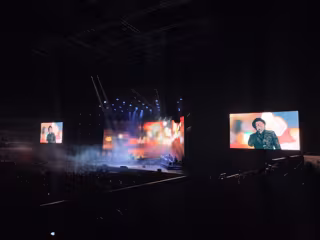 Unos minutos más tarde, la megafonía ha anunciado que estaban "examinando el golpe" que había recibido el cantante, pero que estaba consciente y hablaba. "Les pedimos unos minutos de tranquilidad y cuando tengamos seguridad de que podemos continuar o no, se lo diremos", han explicado.