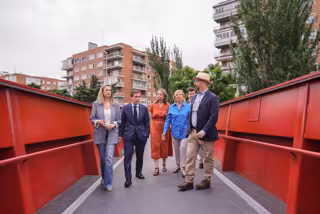 El alcalde de Madrid, José Luis Martínez-Almeida, acompañado de la delegada de Obras y Equipamientos, Paloma García Romero, y las concejalas de Salamanca, Cayetana Hernández de la Riva, y Chamartín, Yolanda Estrada, ha visitado esta mañana la nueva pasarela peatonal construida por el Ayuntamiento.