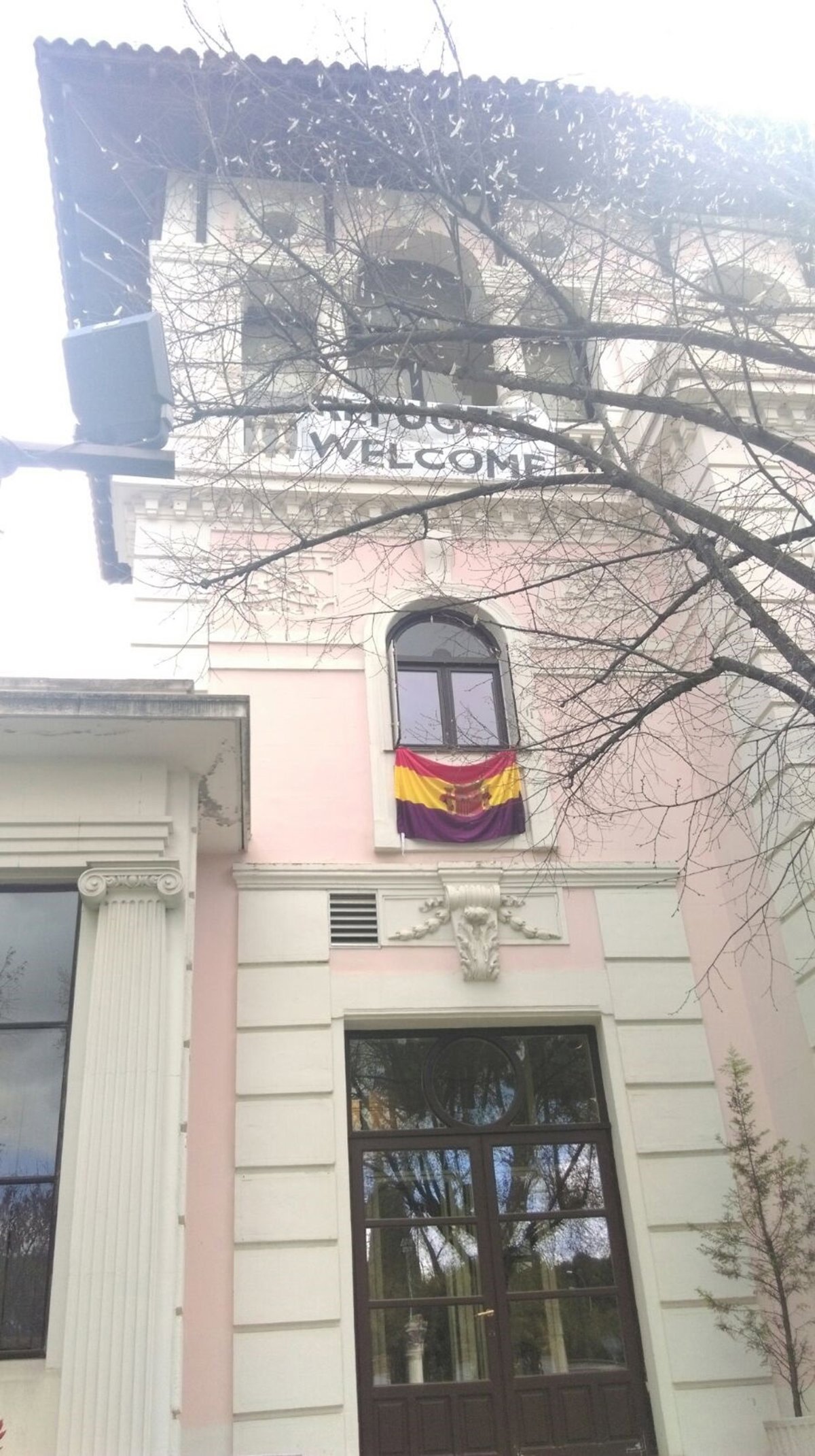 El delegado de Economía y Hacienda de Madrid, Carlos Sánchez Mato, y la concejal-presidenta de Hortaleza, Yolanda Rodríguez, han colgado la bandera republicana en la ventana de sus despachos para conmemorar el aniversario de la proclamación de la II República.