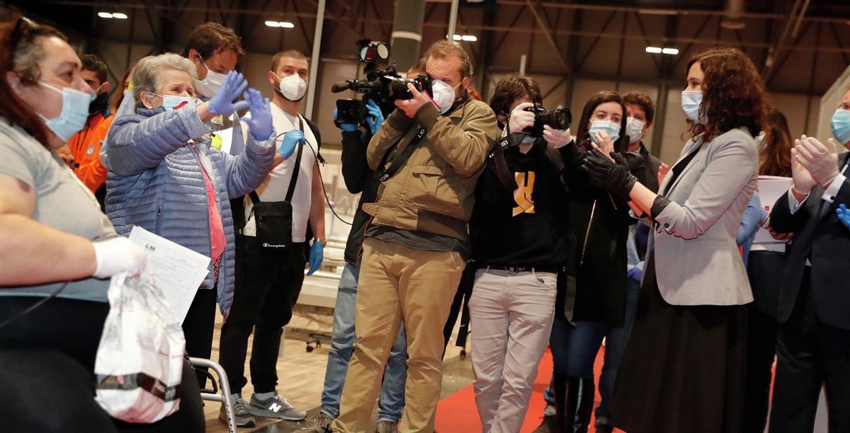 En el acto de apagado han participado decenas de sanitarios y las cuatro últimas pacientes, además de políticos y representantes de Ifema. A la llegada de la presidenta reginoal, Isabel Díez Ayuso, y durante la foto con ellos, algunos sanitarios han coreado varias veces "Sanidad Pública" y han pedido que se hagan los test diagnósticos de coronavirus a toda la plantilla.
