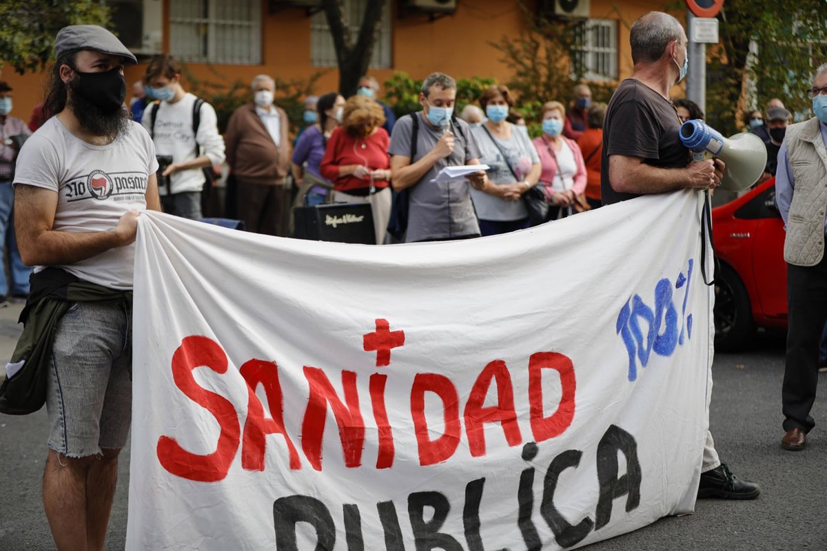 Archivo - Imagen de recurso de varias personas que sostienen una pancarta en la que se lee 'Sanidad Pública' durante una concentración en el Centro de Salud Abrantes. - Jesús Hellín - Europa Press - Archivo