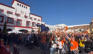 La localidad madrileña ha celebrado el acontecimiento viendo la última prueba del Mundial, el GP Solidario de Barcelona, en una pantalla gigante en la plaza de la Constitución, a la que han acudido decenas de vecinos.