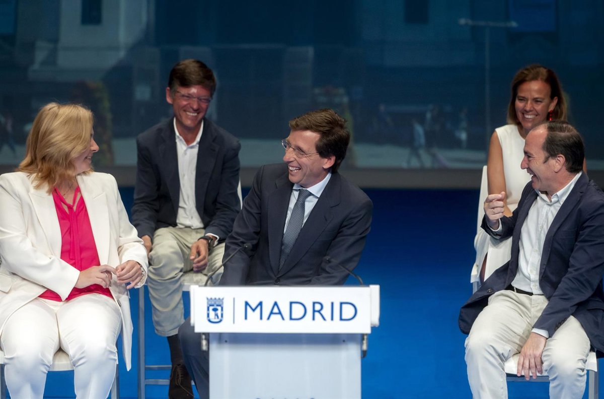 El alcalde de Madrid, José Luis Martínez-Almeida, acompañado por la vicealcaldesa, Inma Sanz, y todos los miembros del Gobierno municipal, hace balance de la actividad desarrollada durante los dos primeros años de mandato - Alberto Ortega - Europa Press