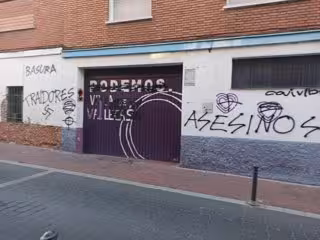 La sede de Podemos en Villa de Vallecas también aparece vandalizada con esvásticas y palabras como "terroristas", "traidores" y "basura", lo mismo que ocurrió ayer en la Casa del Pueblo socialista en el distrito.