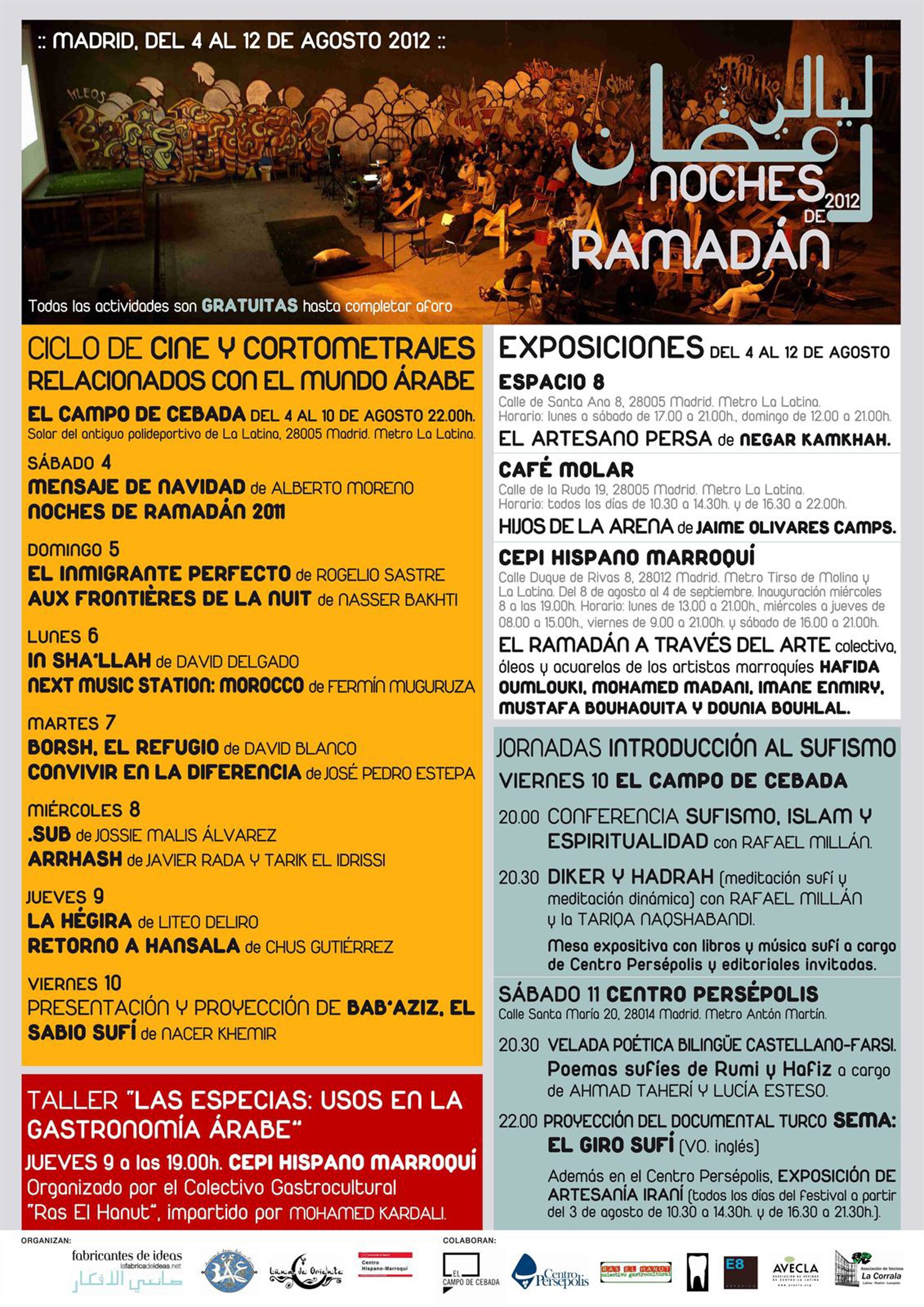 Las películas, documentales y cortometrajes, que se proyectarán todos los días a las 22 horas en el Campo de Cebada de La Latina, tienen por objetivo de mostrar la realidad cultural del mundo árabe y musulmán a la ciudadanía española, coincidiendo con la celebración del Ramadán, que este año se celebra del 20 de julio al 19 de agosto.