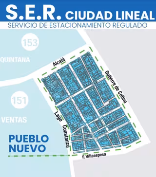El Servicio de Estacionamiento Regulado (SER) se pondrá en funcionamiento en nuevas zonas del barrio de Pueblo Nuevo, Concepción, San Juan Bautista y Atalaya del distrito de Ciudad Lineal, así como en el barrio de San Isidro del distrito de Carabanchel a partir del 25 de septiembre.