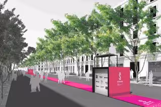 Además, para dar unidad a todo el recorrido, el Consistorio madrileño ha diseñado una decoración especial para la calle basada en la imagen corporativa del nuevo Serrano, de color magenta, a través de una moqueta en el centro de la calzada, a modo de cinta de regalo.