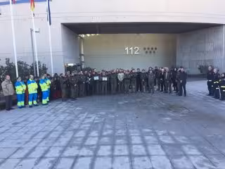Los servicios de emergencia y el personal de Madrid 112 se han sumado a los cinco minutos de silencio en homenaje a los agentes forestales fallecidos en Lleida con una concentración a las puertas de su sede.
