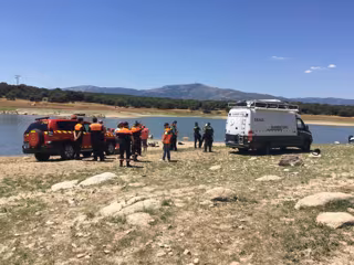 Los servicios de emergencia siguen buscando desde hace horas la cabina del helicóptero biplaza que se ha estrellado este sábado en el pantano de Valmayor.